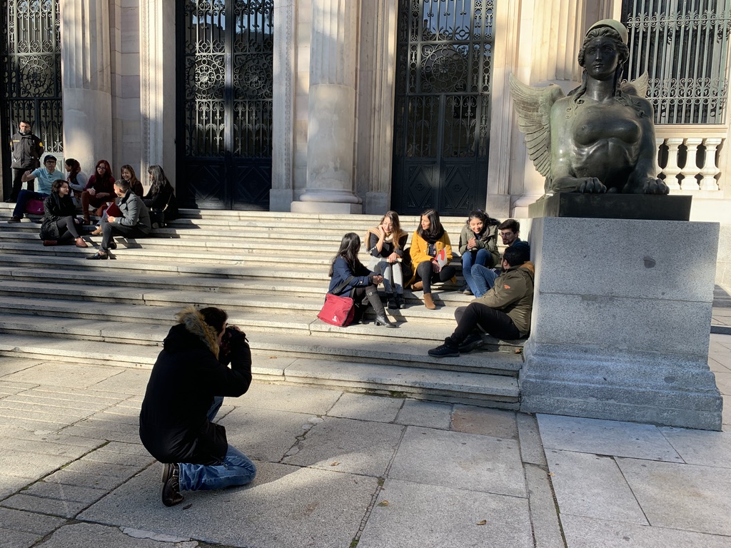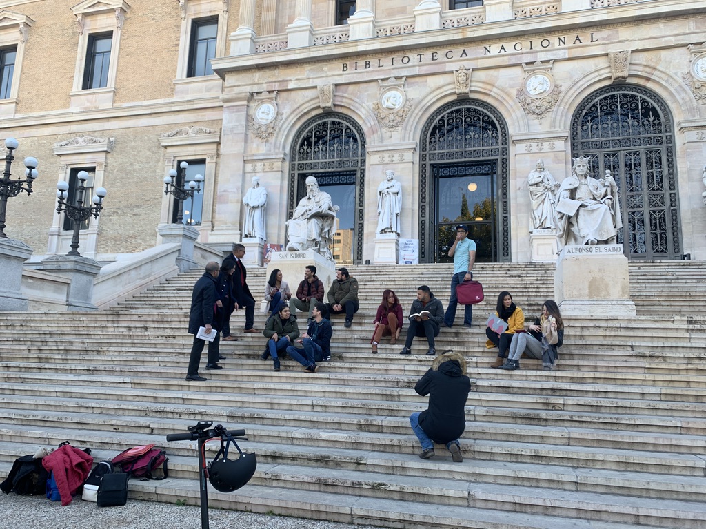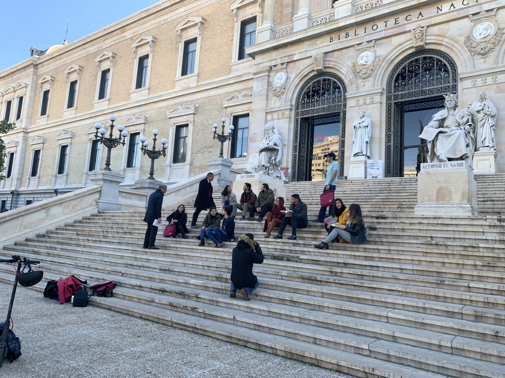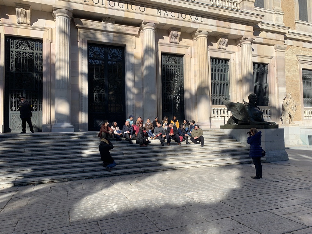 Así pues, el 16 de noviembre, nos reunimos en la Plaza de Colón, en Madrid, para dirigirnos a la Biblioteca Nacional y comenzar el reportaje. Hay que mencionar de manera muy especial a Pedro Gabriel Fernández, que realizó un trabajo inmejorable, organizando y colocando a sus compañeros para captar de ellos las mejores imágenes. Seguidamente, y por cercanía, nos dirigimos al Museo Arqueológico Nacional, donde también tomó instantáneas que dejaban ver otras escenas de carácter educativo, para finalizar el reportaje, de nuevo en la Plaza de Colón.