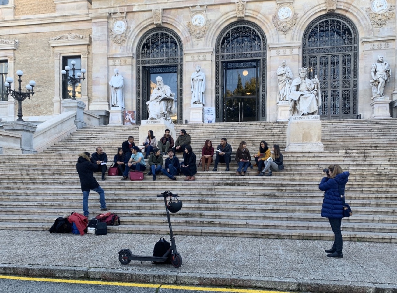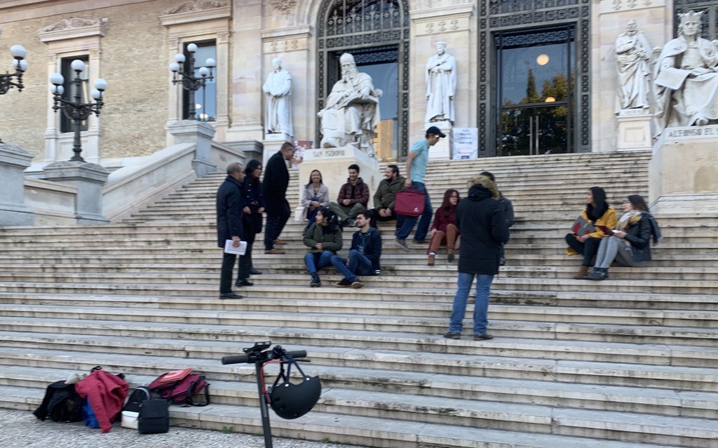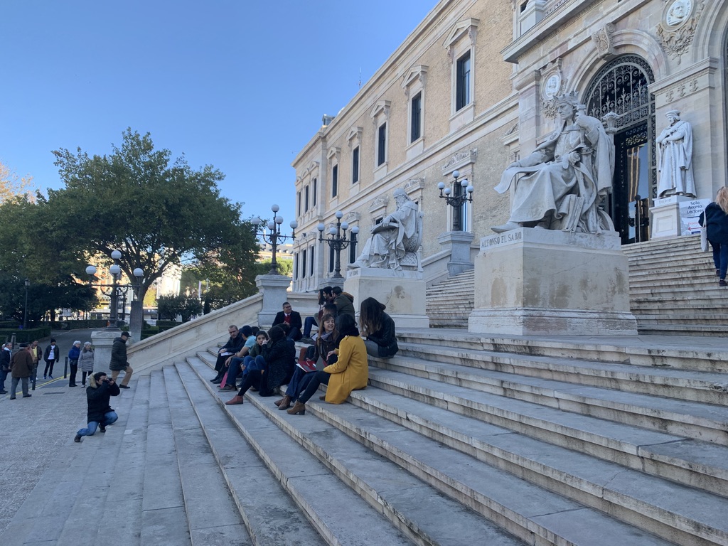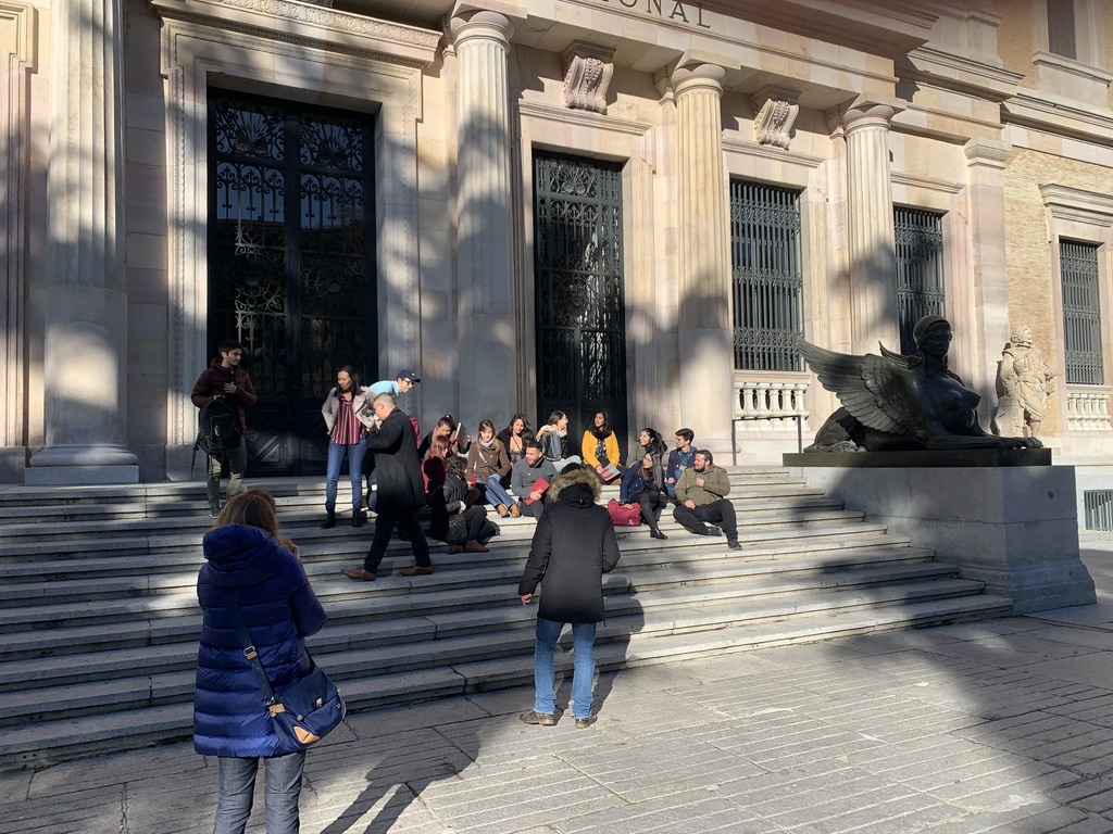 Así pues, el 16 de noviembre, nos reunimos en la Plaza de Colón, en Madrid, para dirigirnos a la Biblioteca Nacional y comenzar el reportaje. Hay que mencionar de manera muy especial a Pedro Gabriel Fernández, que realizó un trabajo inmejorable, organizando y colocando a sus compañeros para captar de ellos las mejores imágenes. Seguidamente, y por cercanía, nos dirigimos al Museo Arqueológico Nacional, donde también tomó instantáneas que dejaban ver otras escenas de carácter educativo, para finalizar el reportaje, de nuevo en la Plaza de Colón.