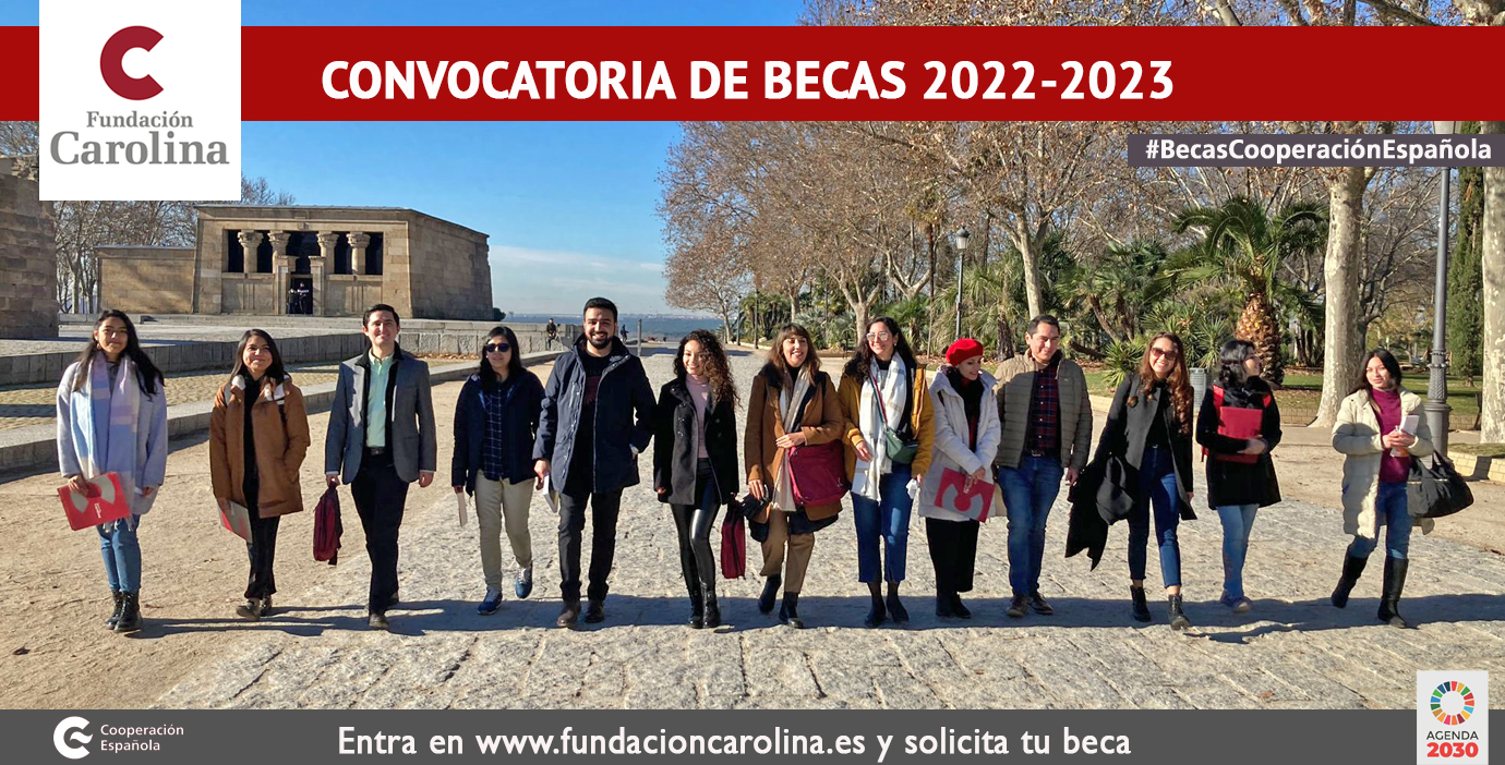 La convocatoria de becas 2022-23 de la Fundación Carolina se encuadra en el marco de las “Becas de la Cooperación Española”, integradas por las becas de Fundación Carolina y de la AECID, y mantiene su adecuación al ámbito de las 5 “P” de la Agenda 2030: personas, planeta, prosperidad, paz, justicia e instituciones, y alianzas (partenariados).