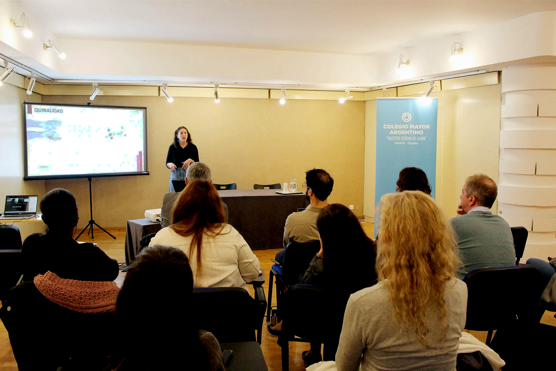 El acto comenzó con un saludo de bienvenida a cargo de la Secretaría de Educación de Argentina, seguido de la intervención de la directora del Colegio Mayor Argentino, Eva Carrasco Bañuelos, junto al responsable de Doctorado y Movilidad de la Fundación Carolina, Juan Torres.