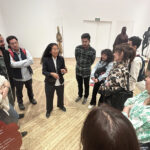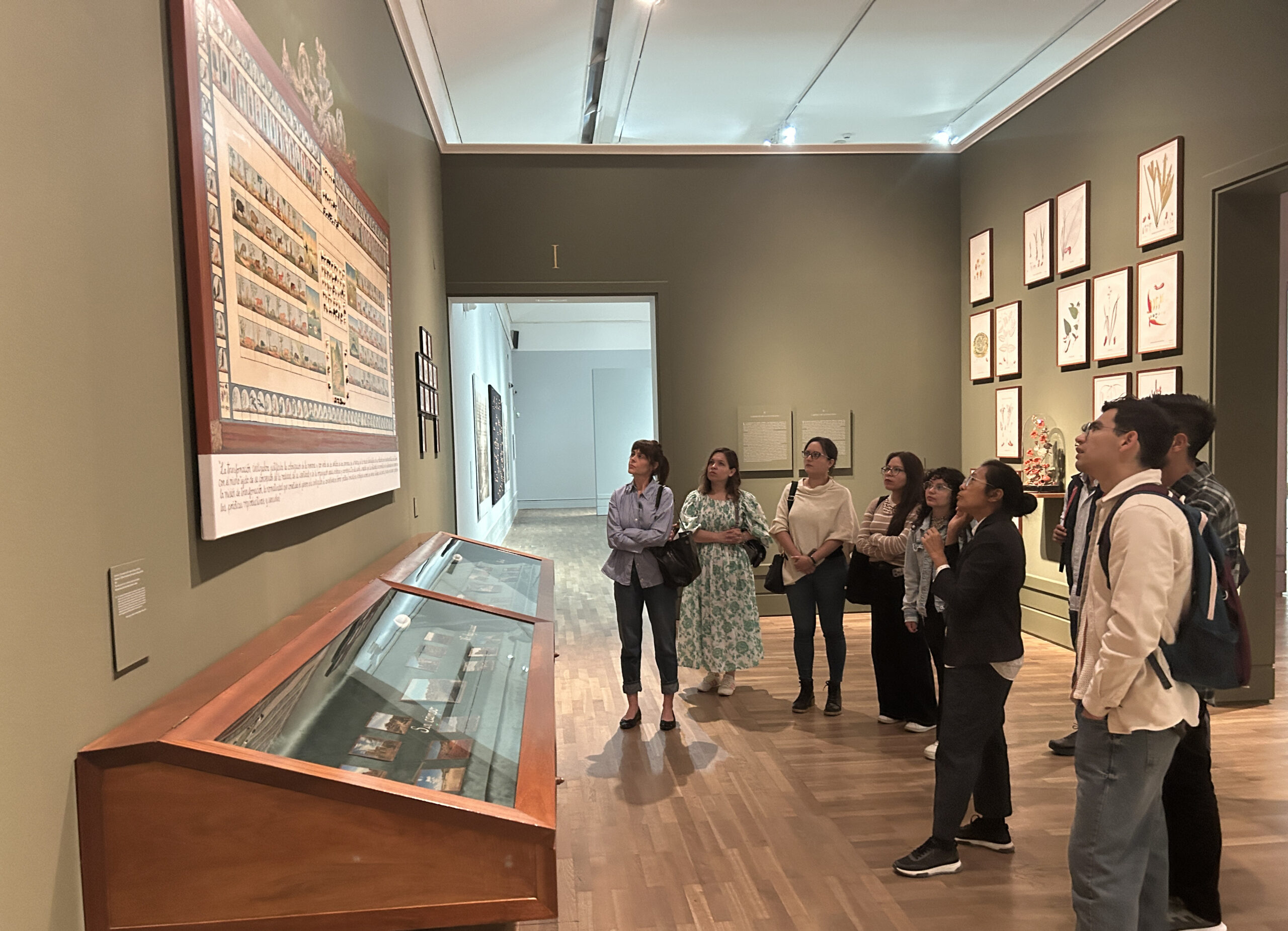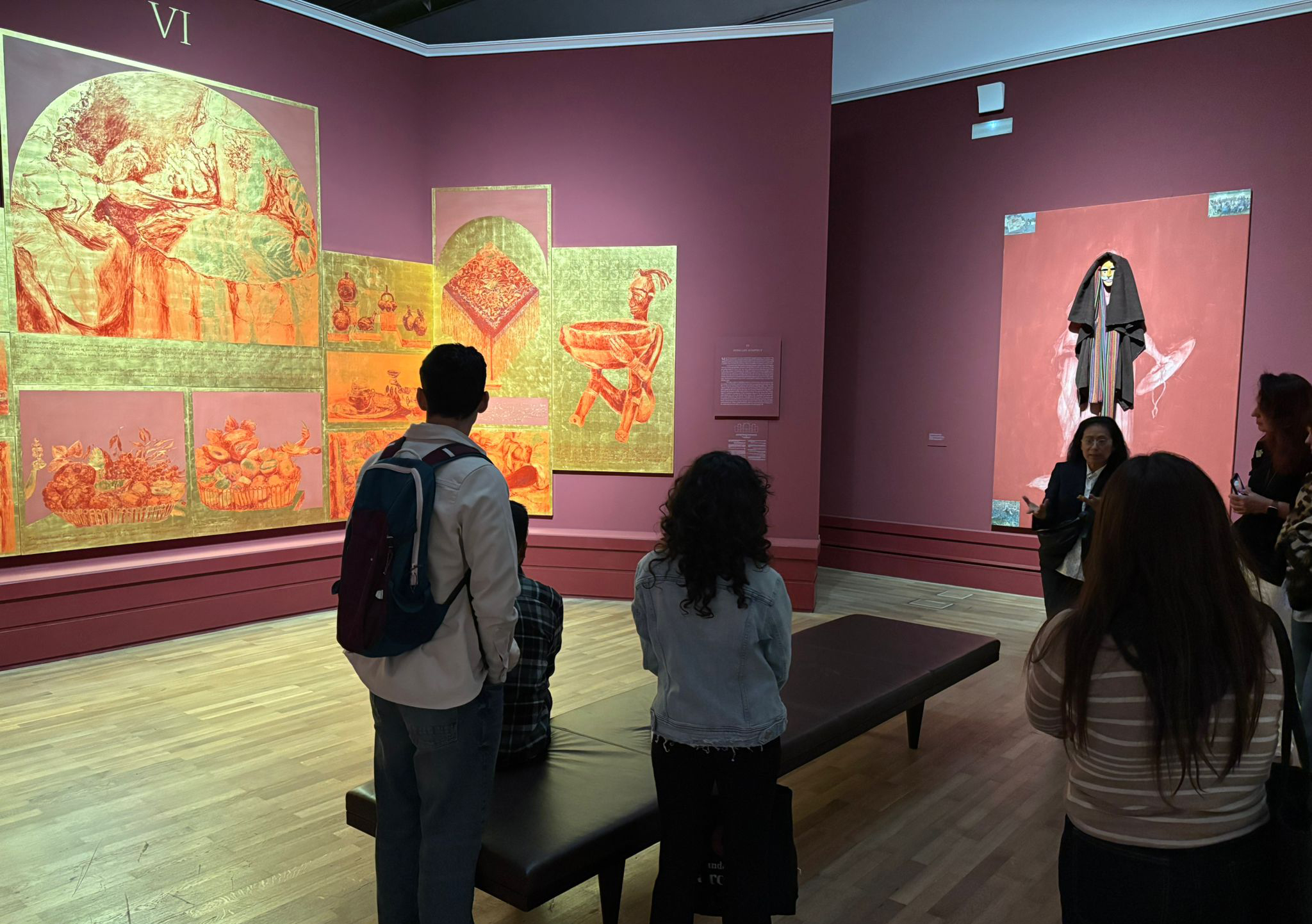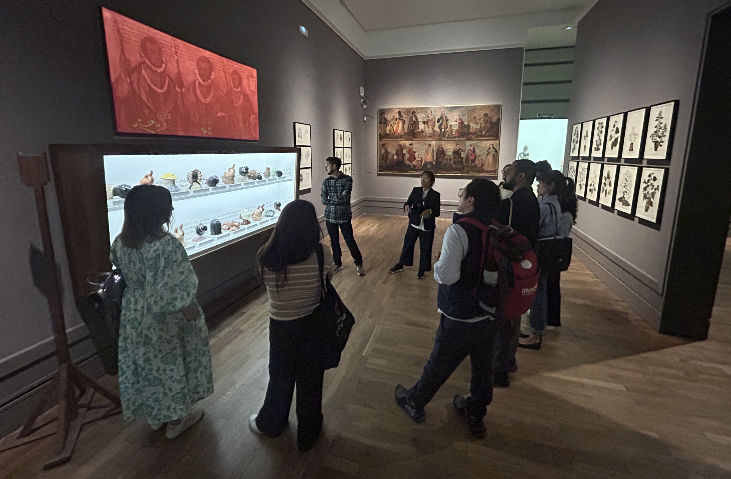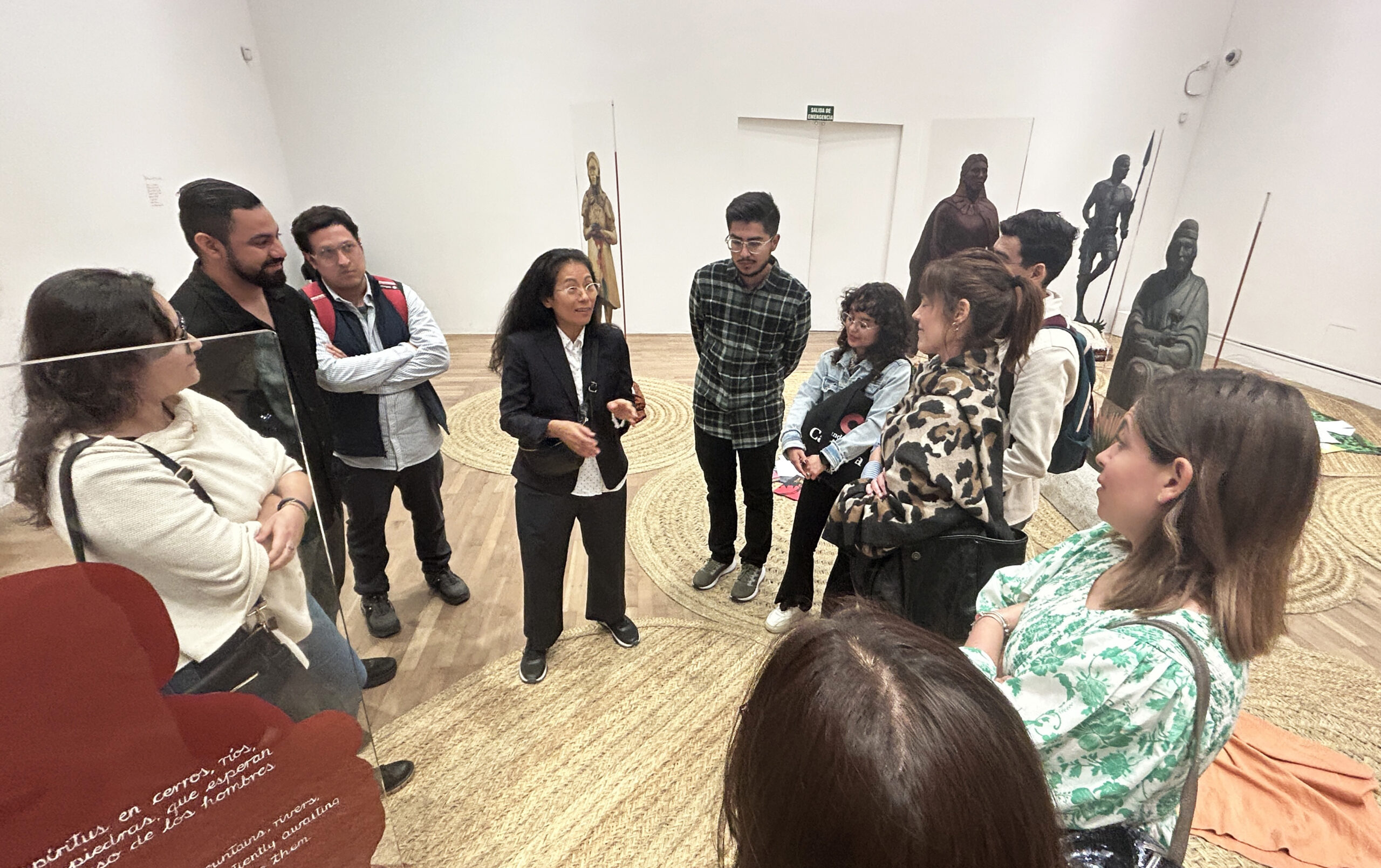 Un grupo de becarios y becarias de Fundación Carolina que se encuentran en Madrid tuvo la oportunidad de realizar una visita guiada a la exposición Pinacoteca migrante, de la artista Sandra Gamarra, en la Biblioteca Nacional de España. La propia artista acompañó al grupo durante el recorrido, ofreciendo una mirada en primera persona sobre su obra y su proceso creativo.