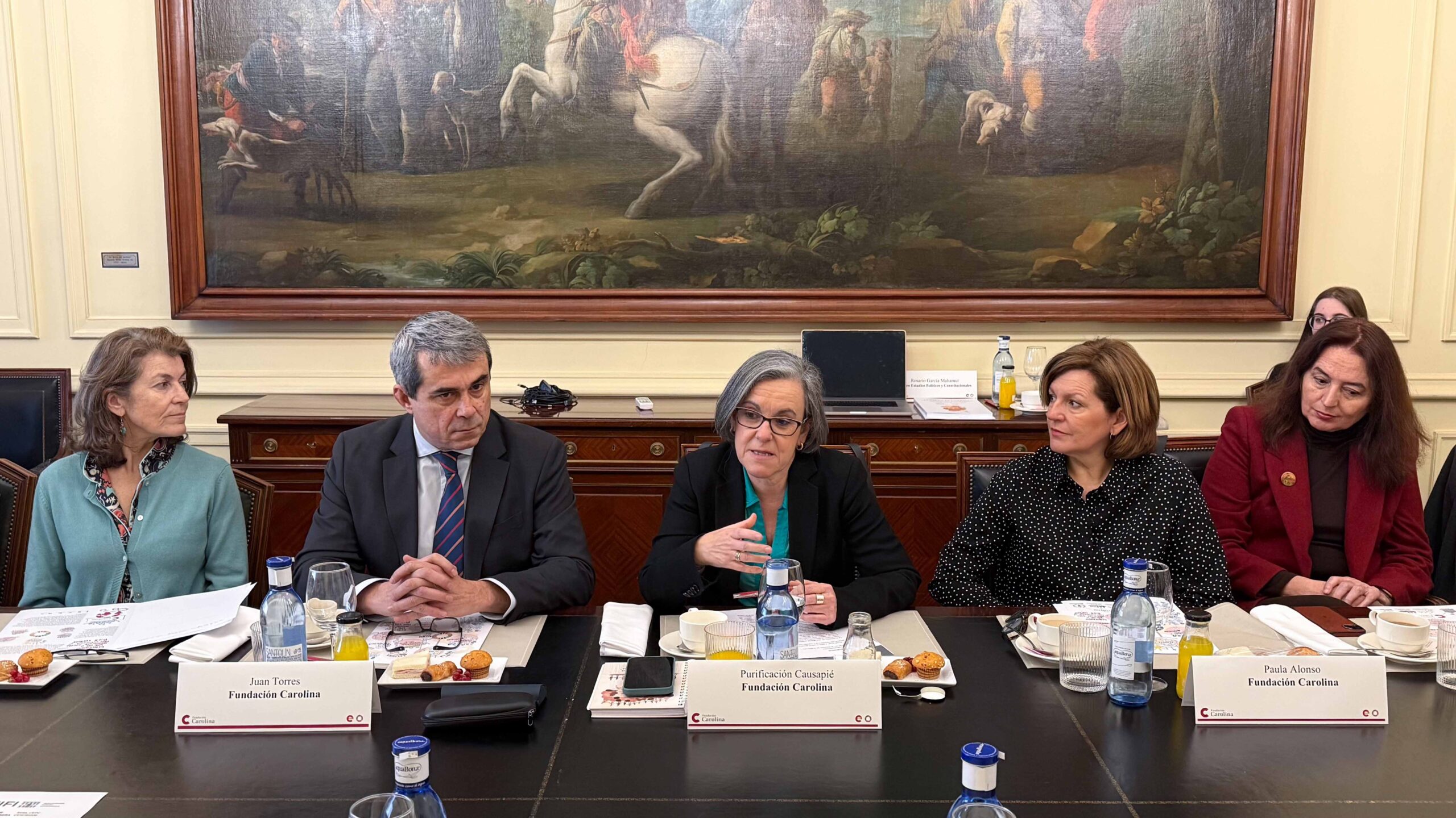 Este viernes, 20 de febrero, se ha celebrado un nuevo encuentro entre la Fundación Carolina y representantes de 10 embajadas latinoamericanas, para compartir las iniciativas en marcha de la institución que puedan ser de interés para los países de la región, en materia de educación superior y cooperación cultural y científica.