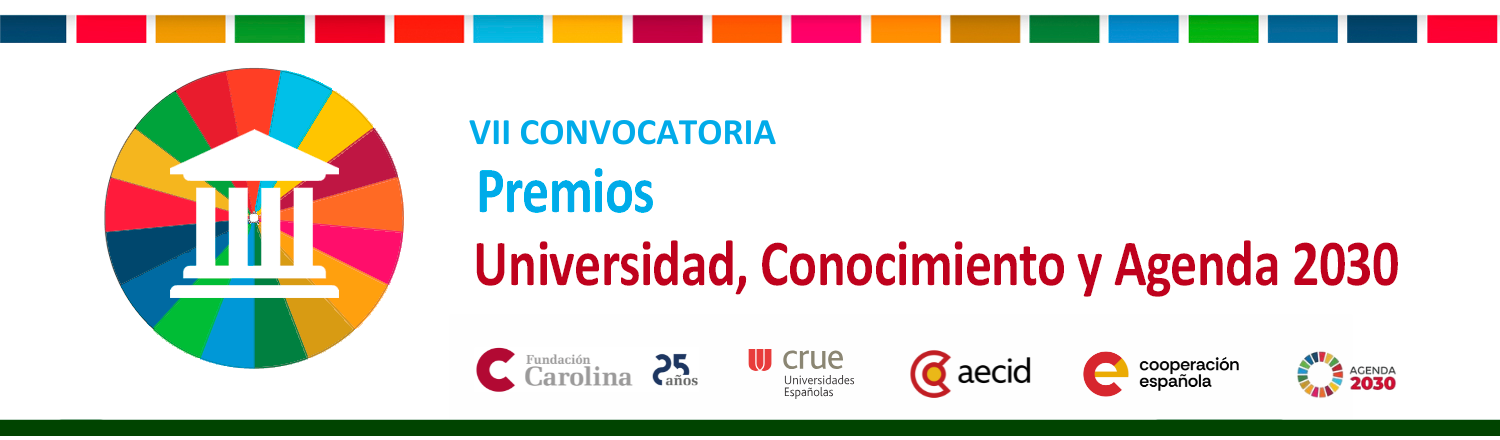 Con el fin de distinguir a los/as estudiantes que hayan realizado sus Trabajos de Fin de Grado (TFG) o sus Trabajos de Fin de Máster (TFM) en cualquier área de conocimiento y, necesariamente, bajo una o varias de las temáticas cubiertas por los 17 Objetivos de Desarrollo Sostenible (ODS) de la Agenda 2030, la Fundación Carolina (FC), la Agencia Española de Cooperación Internacional para el Desarrollo (AECID) y la Conferencia de Rectores de las Universidades Españolas (Crue Universidades Españolas), convocan la 7ª edición de los premios “Universidad, conocimiento y Agenda 2030”. La concesión de los premios, dos otorgados a la categoría TFG, y otros dos a la categoría TFM, se rigen por la siguiente normativa.
